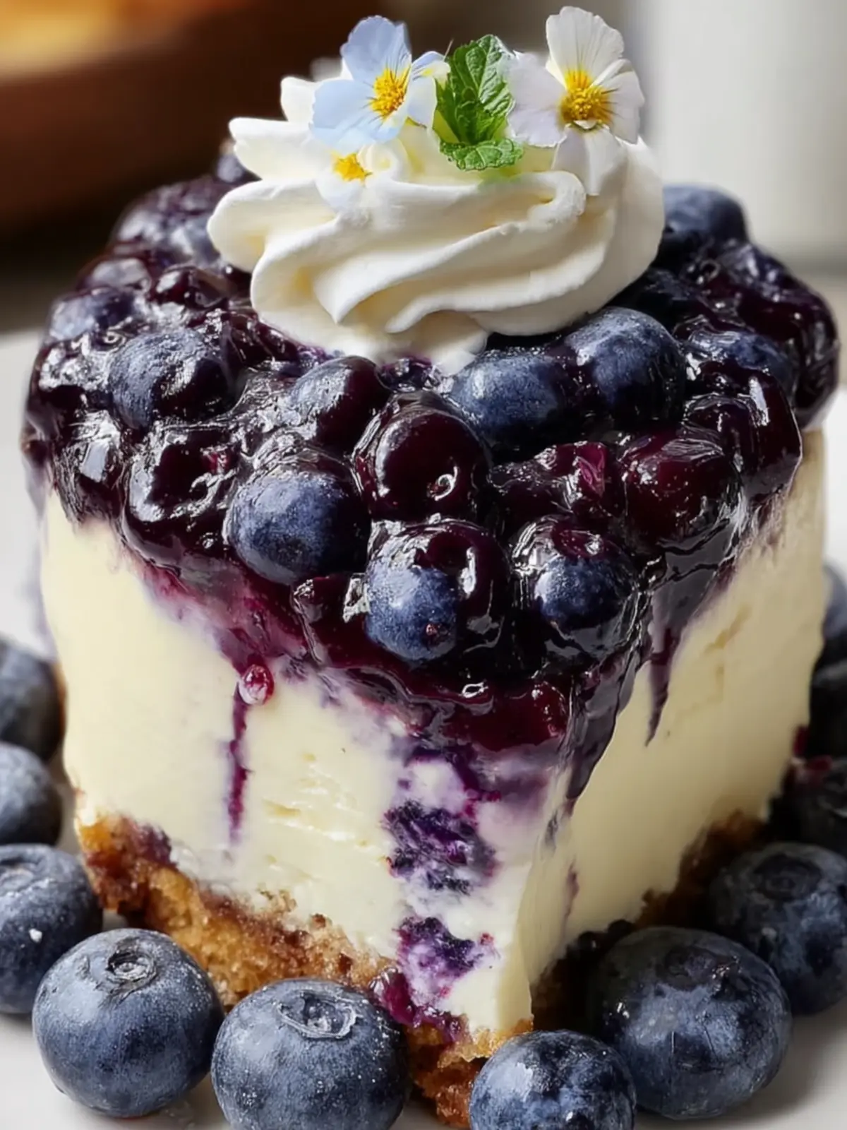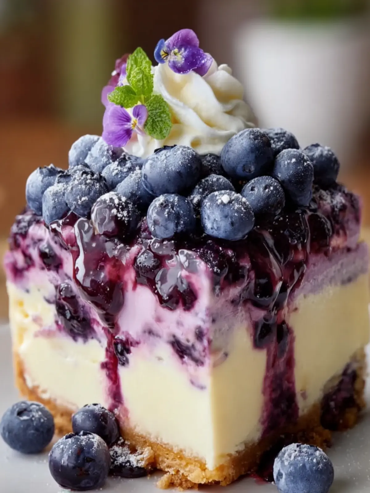 Blueberry Cheesecake with Floral Garnish: An Indulgent Delight