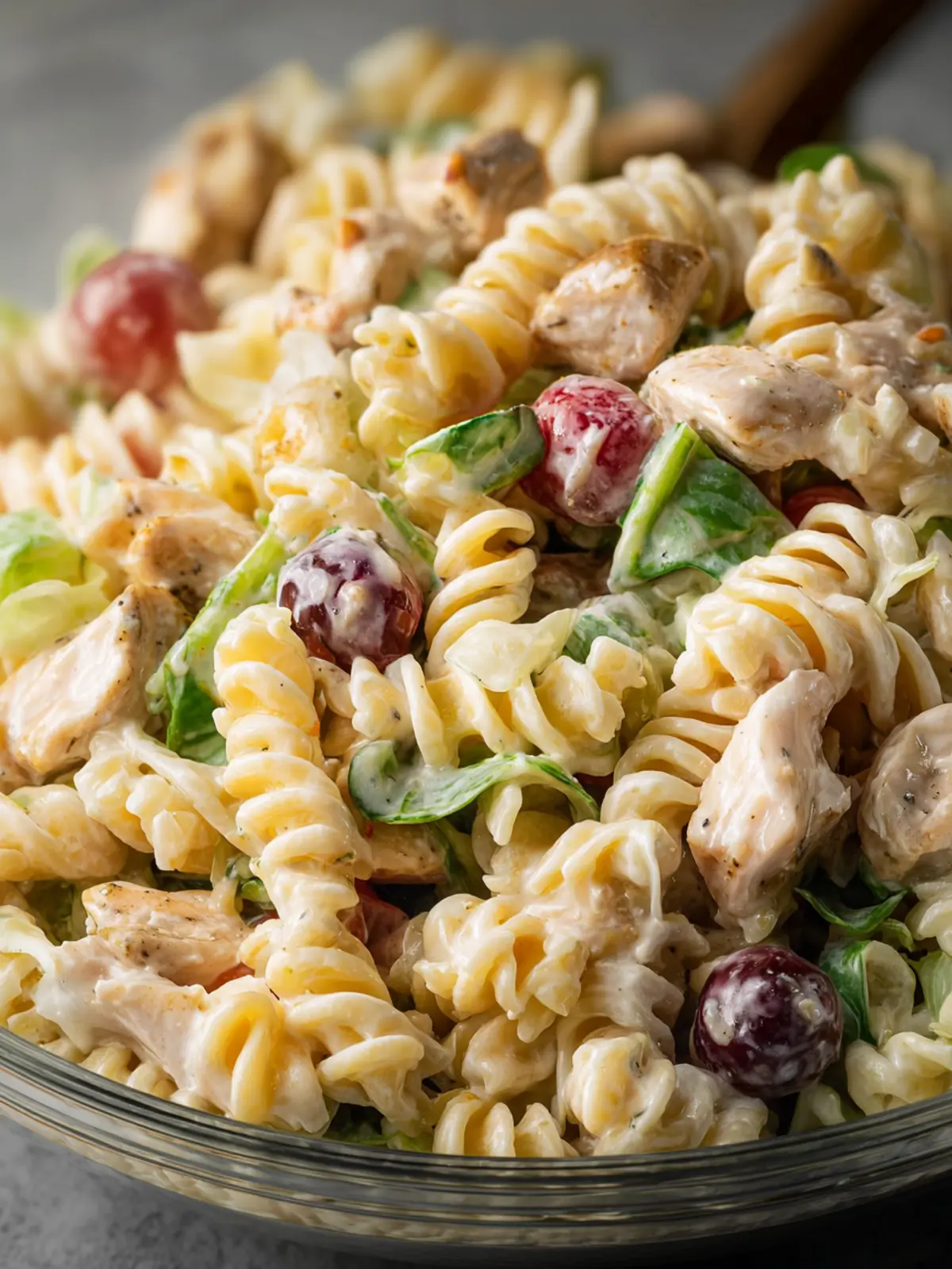 A refreshing and colorful rotini pasta salad with chicken, pineapple, and grapes, perfect for summer gatherings!