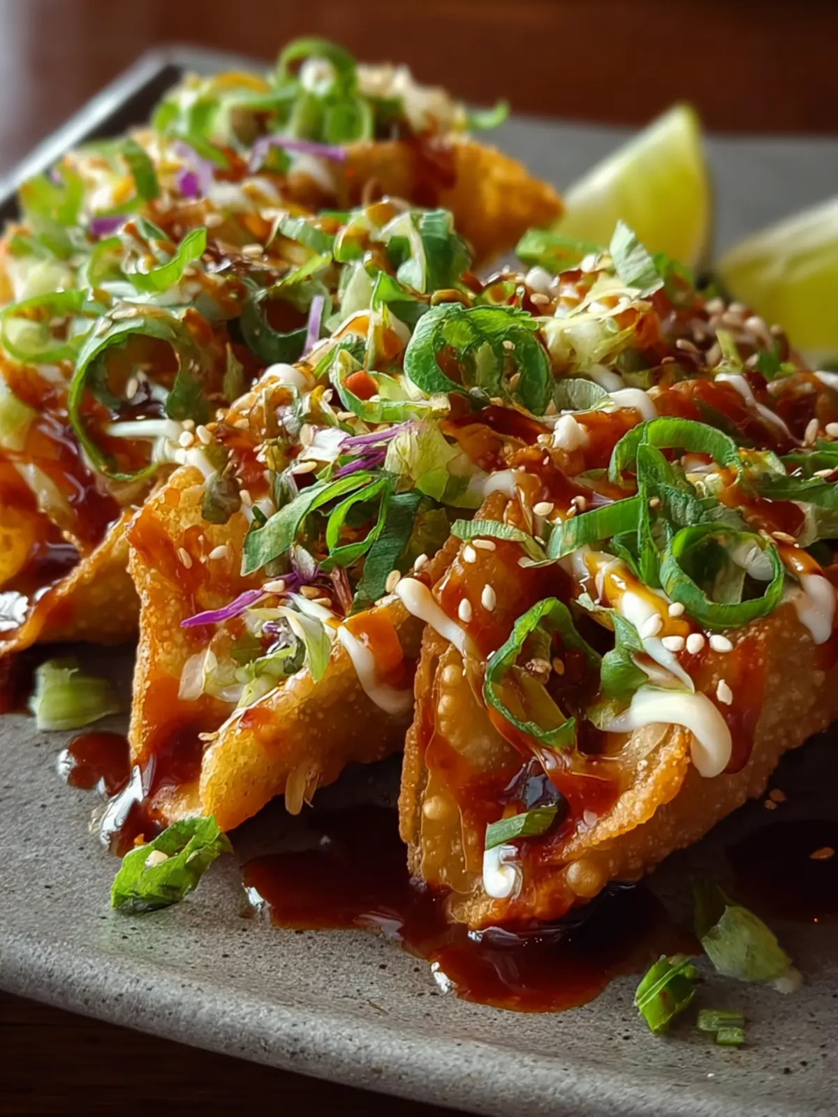 • Teriyaki Chicken: Try using shredded chicken tossed in teriyaki sauce, then top it with a sprinkle of sesame seeds and green onions. This variation offers a sweet and savory twist that pairs beautifully with crunchy wontons.