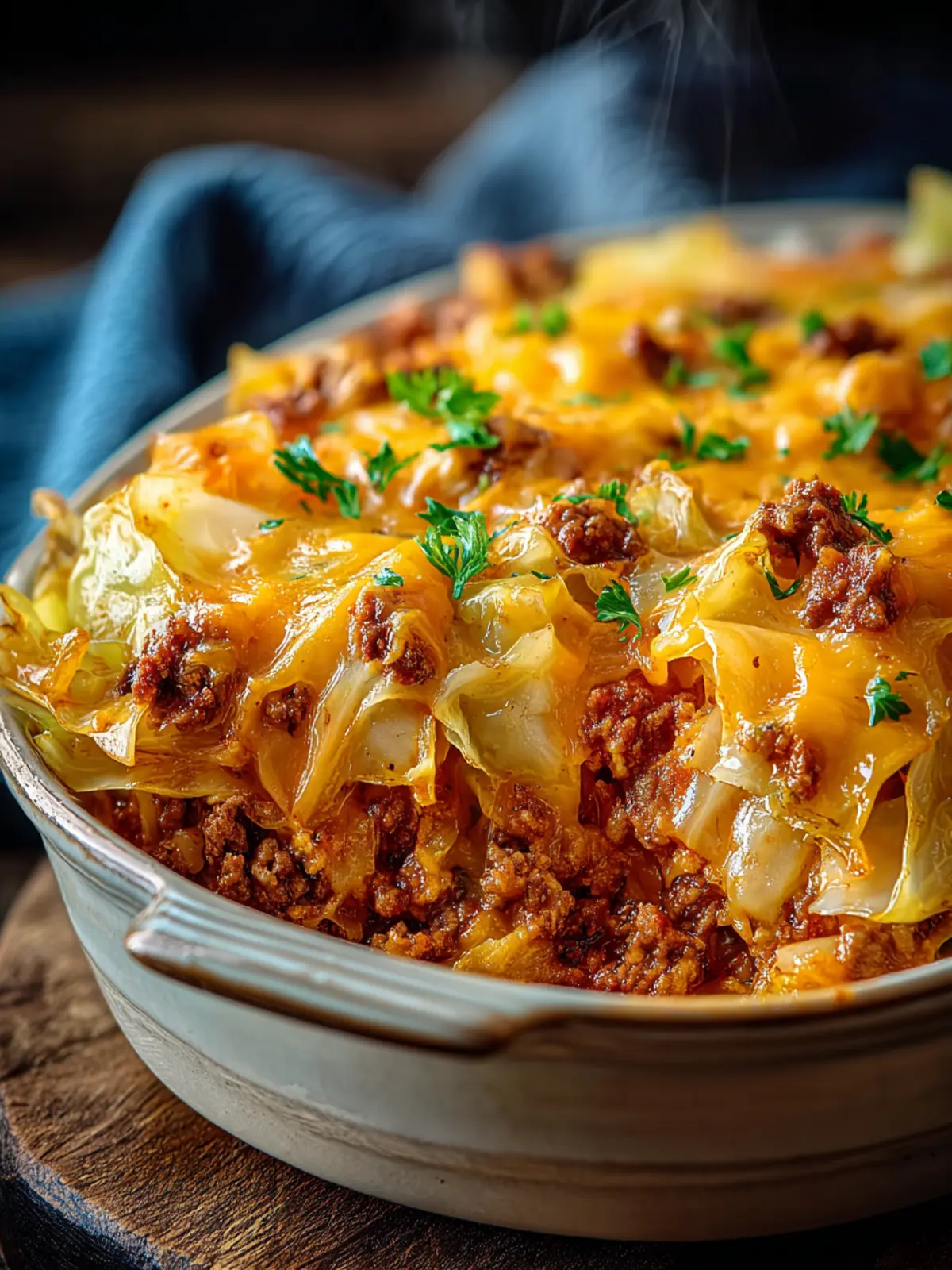 Flavorful Ingredients: The rich tastes of cheddar cheese and seasoned beef blend beautifully with tender cabbage, creating an inviting aroma that fills your kitchen and makes every bite worth savoring.