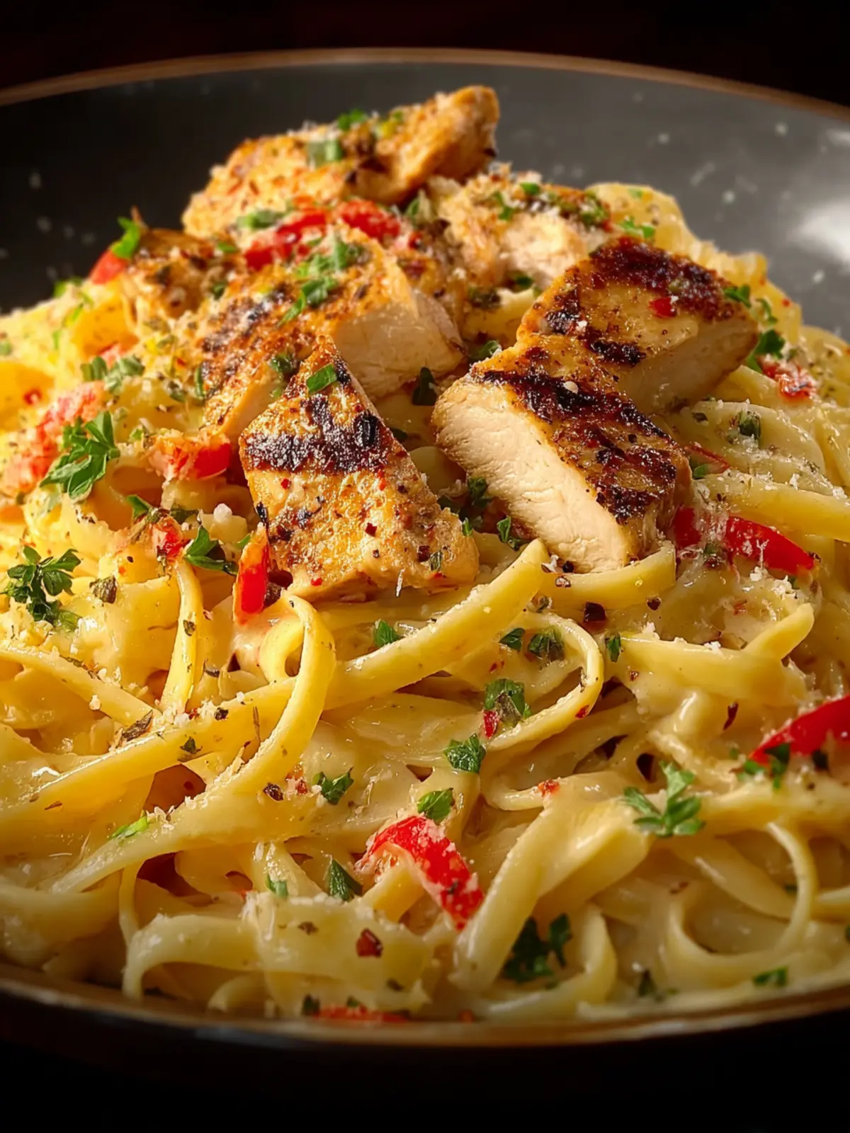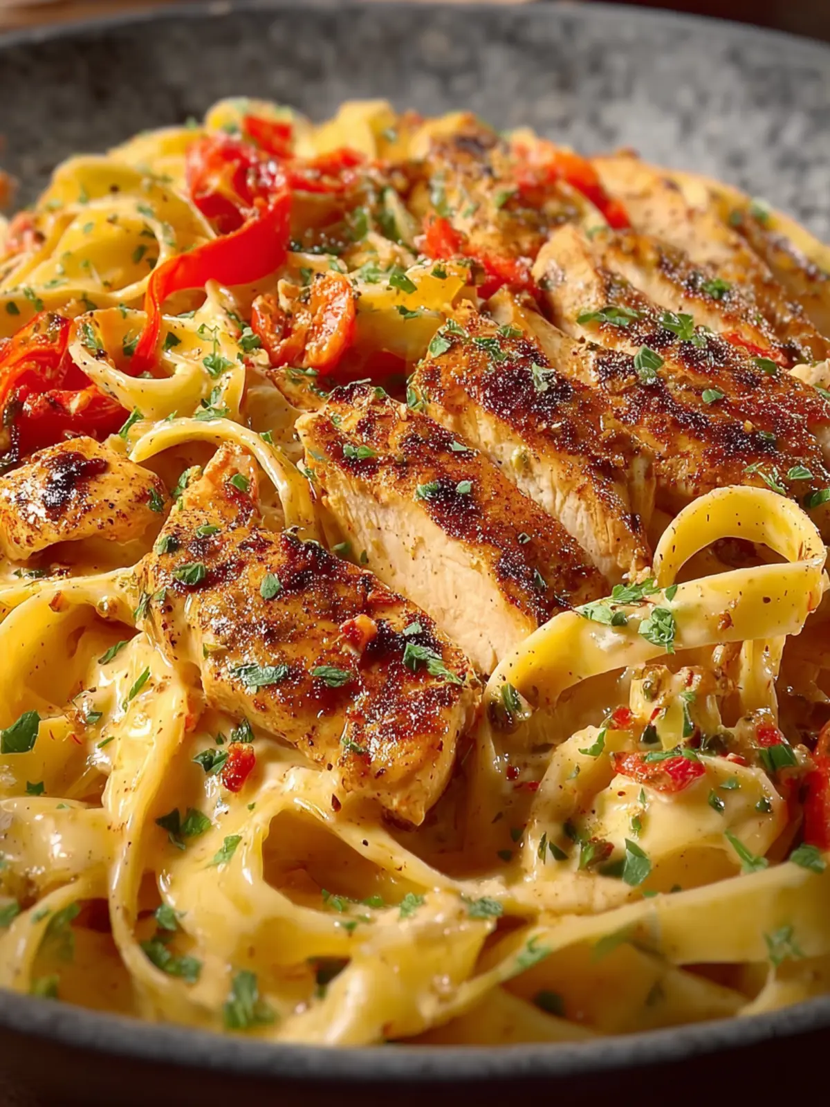 A creamy and flavorful Cajun chicken fettuccine pasta dish, perfect for a weeknight dinner.