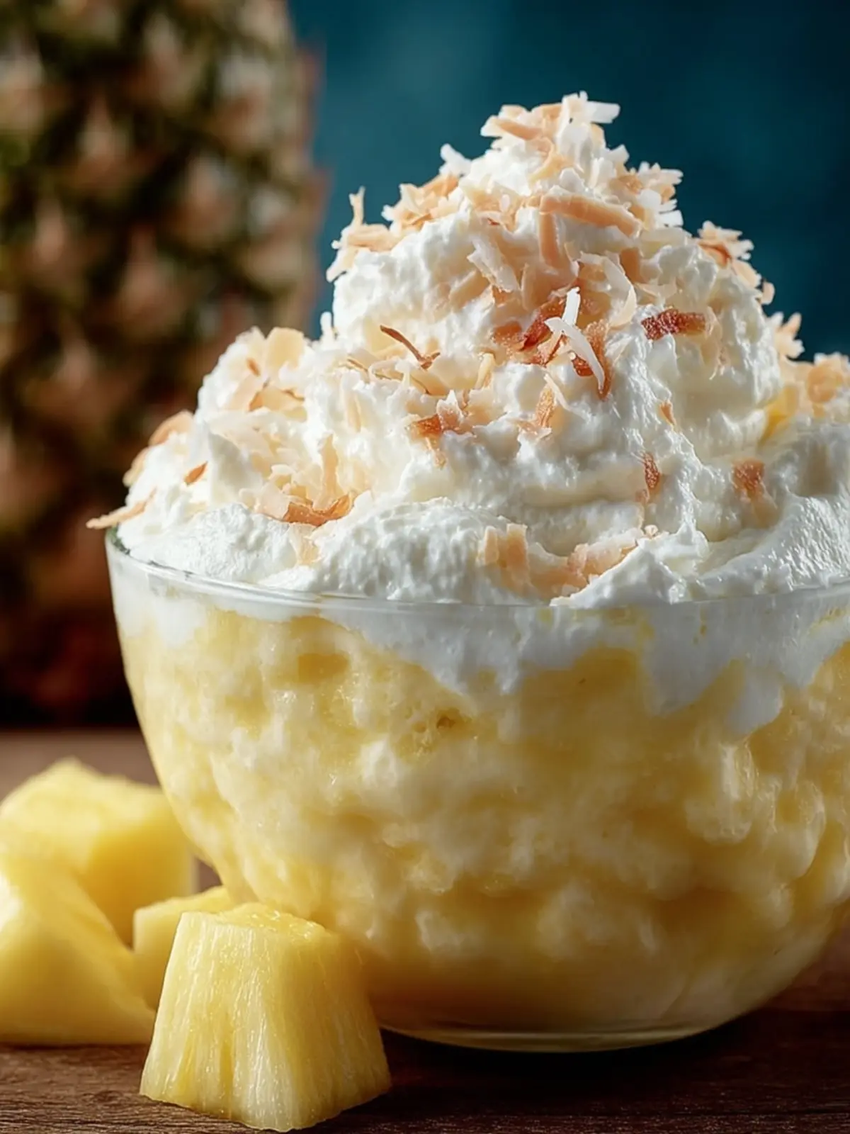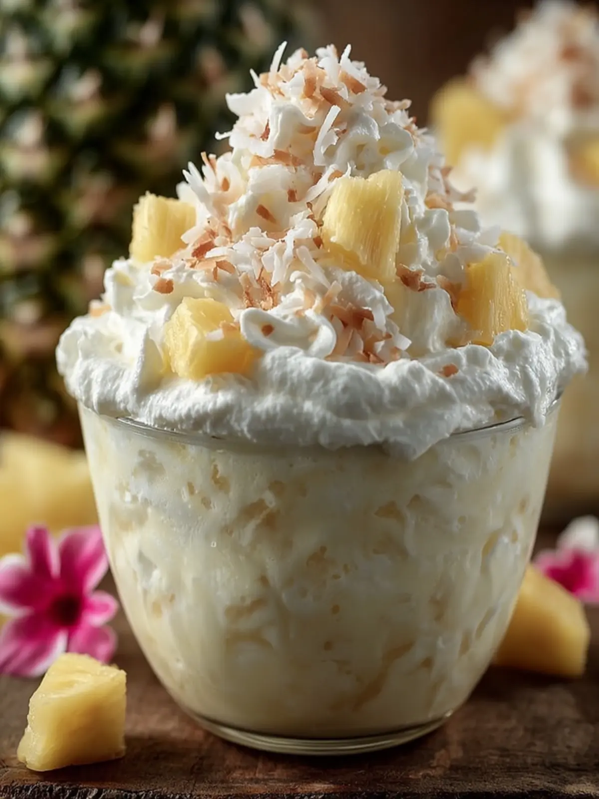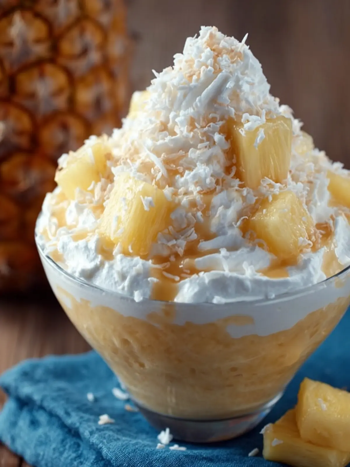 A delicious and creamy dessert that combines fresh pineapple and coconut flavors.