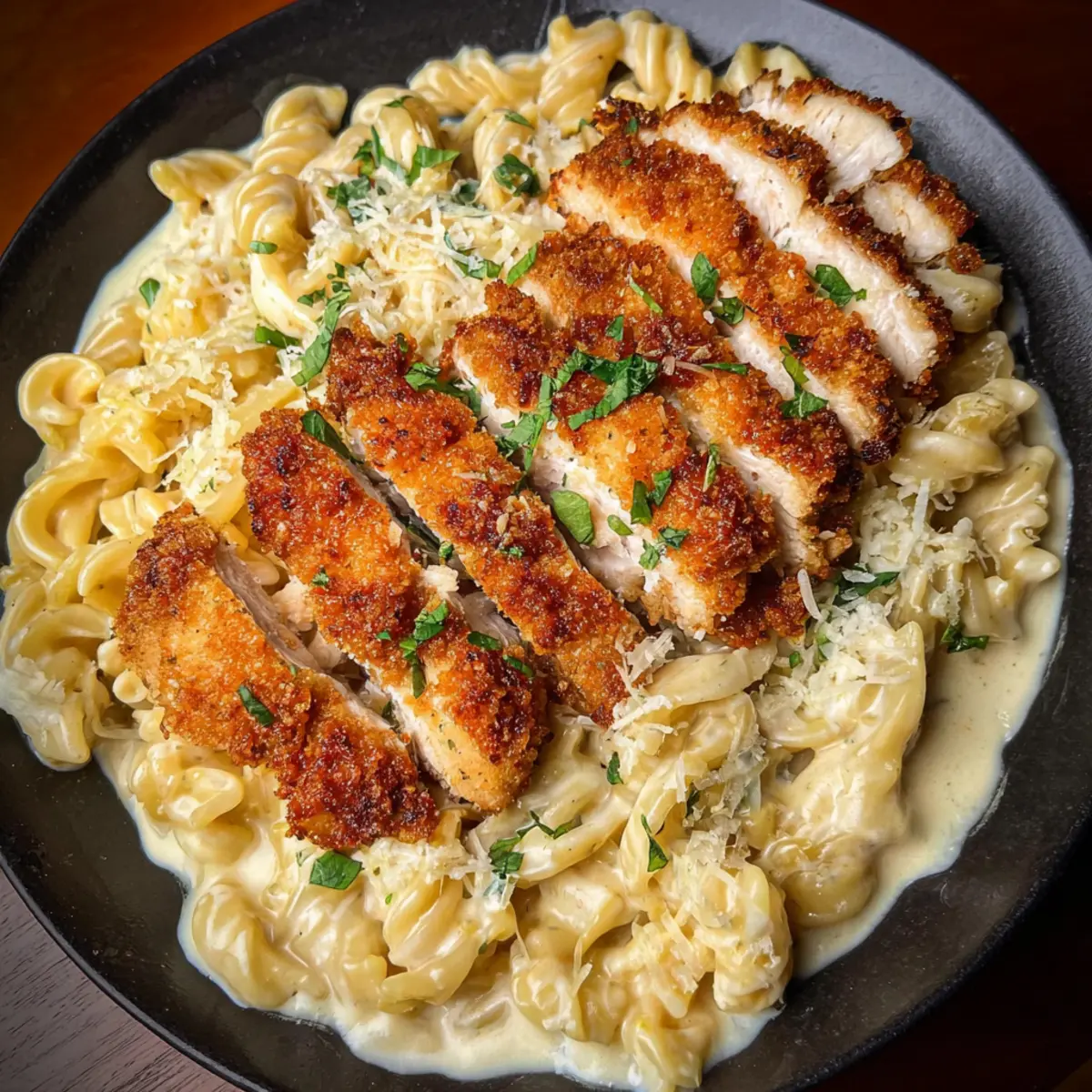 For a gourmet finish, top your Crispy Chicken Alfredo Pasta Dish with freshly chopped parsley and a sprinkle of black pepper. This adds both a pop of color and an extra layer of flavor, transforming your home-cooked meal into restaurant-quality dining.