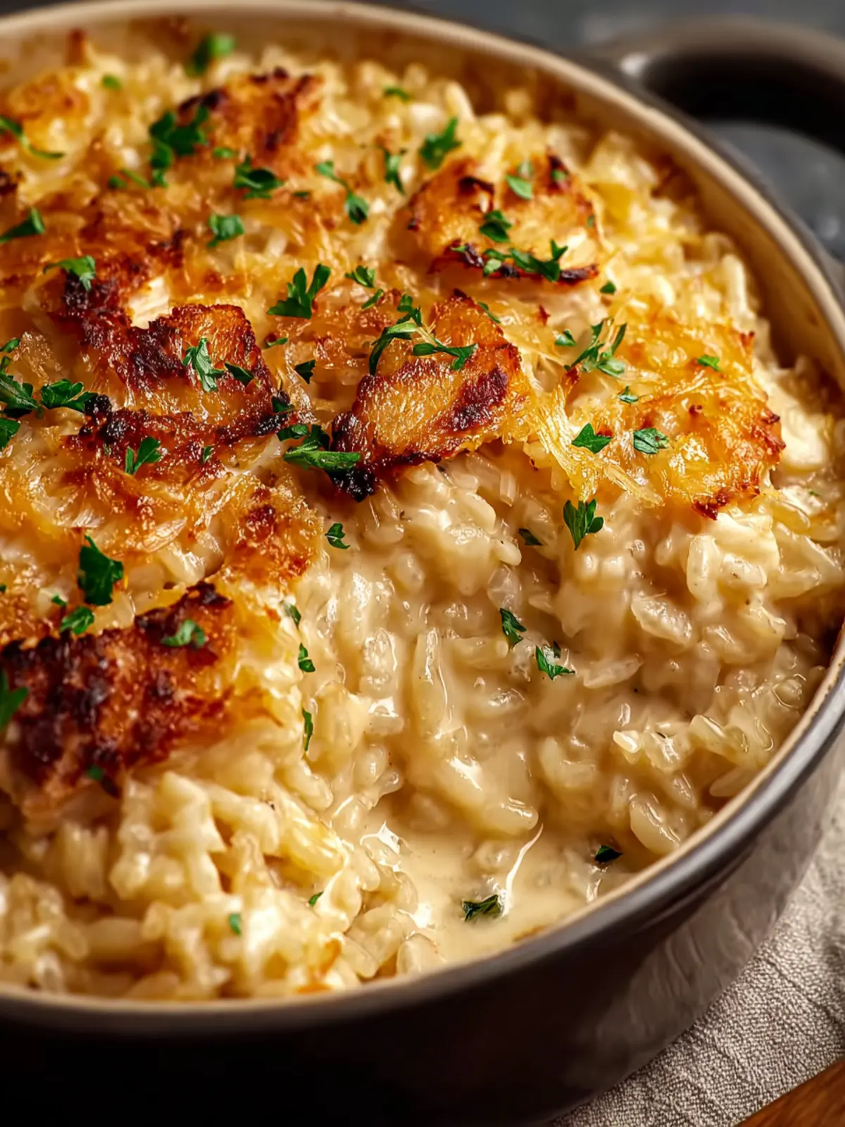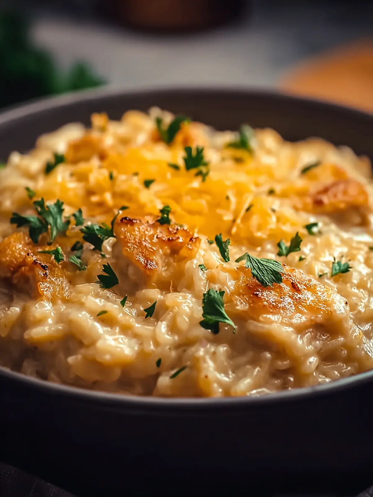 A comforting and creamy chicken and rice casserole that’s easy to make.