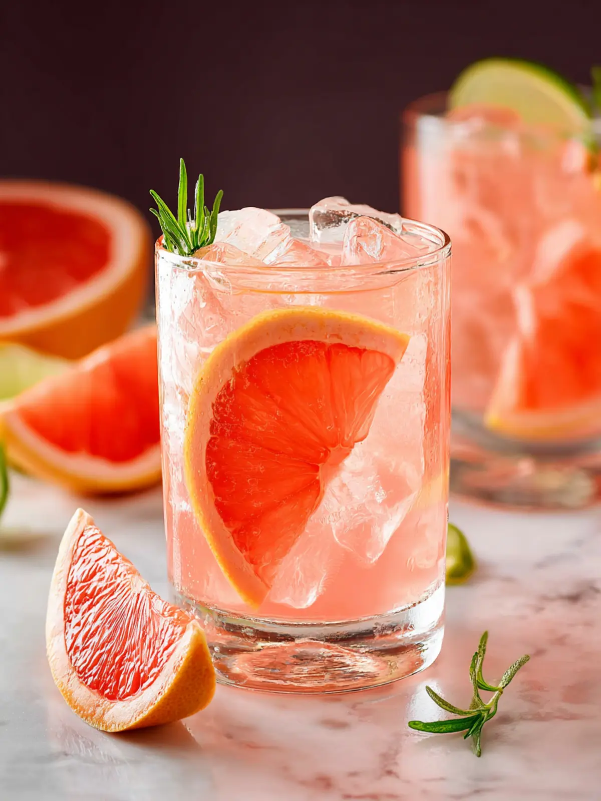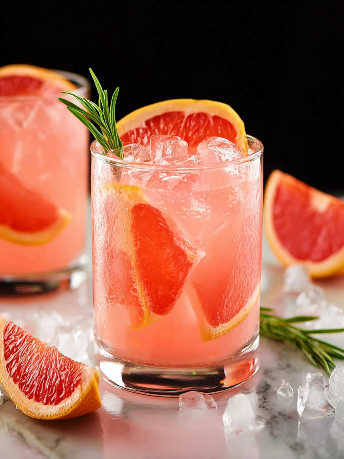 - Garnish with 2 fresh rosemary sprigs and 2 grapefruit slices.