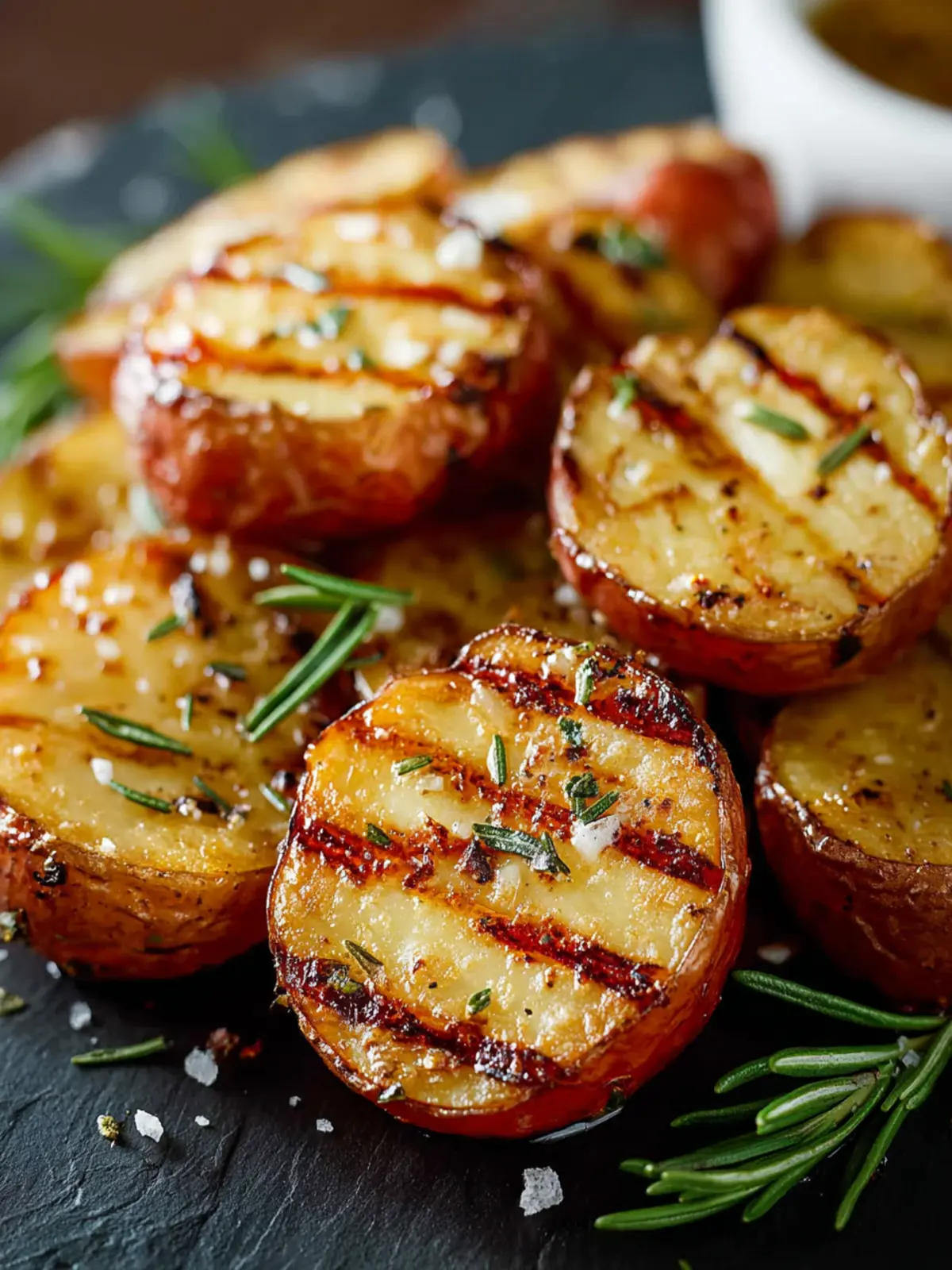 Delicious grilled red potatoes seasoned with aromatic herbs.