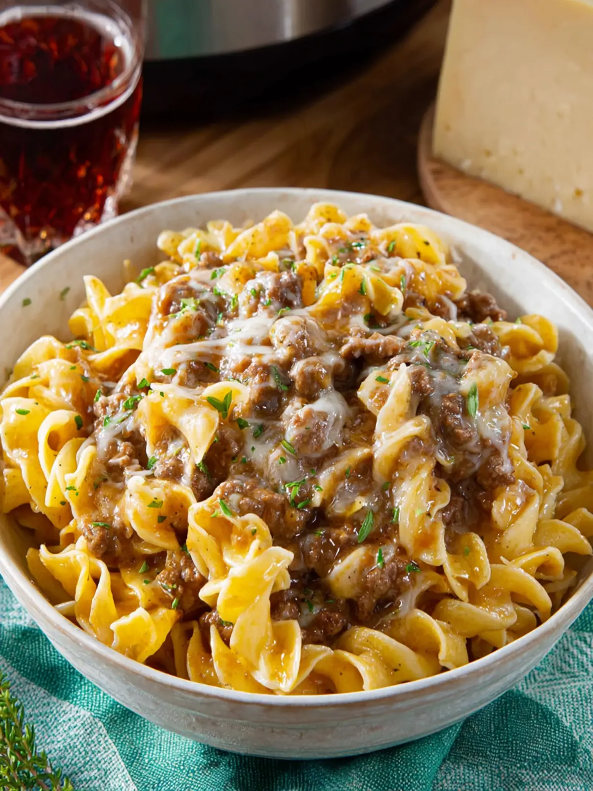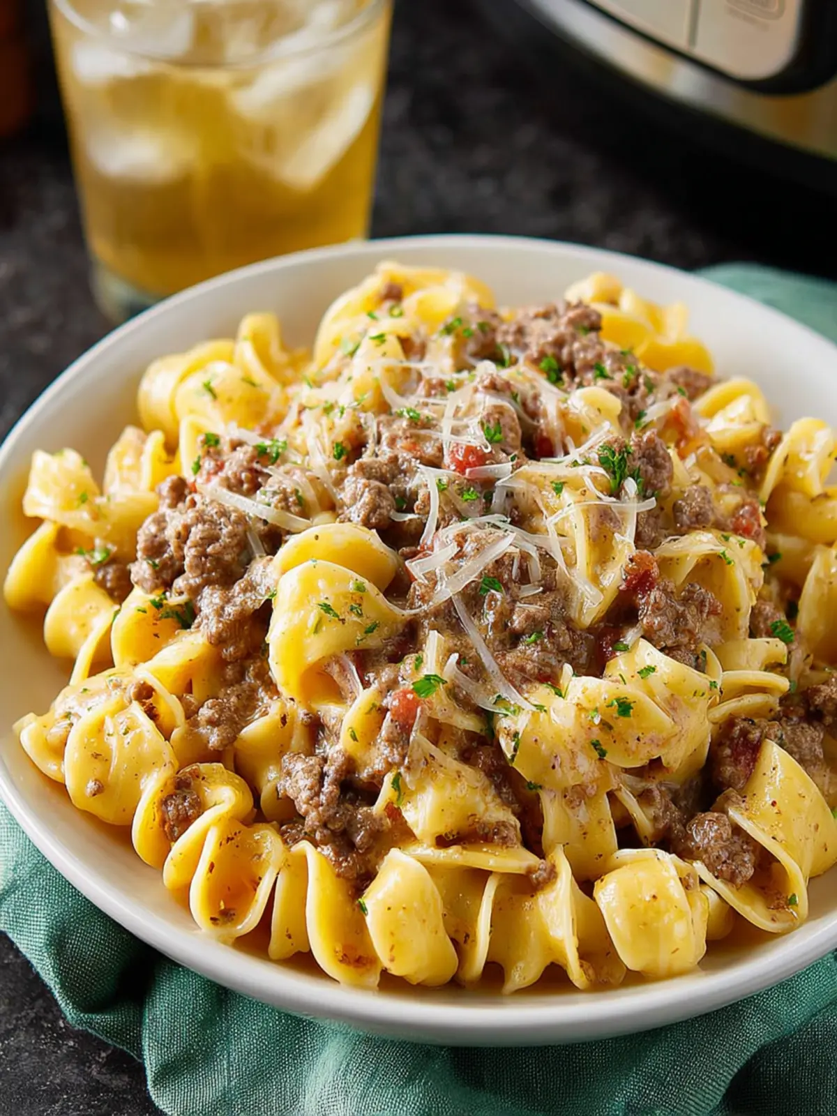 Instant Pot French Onion Ground Beef and Noodles Delight
