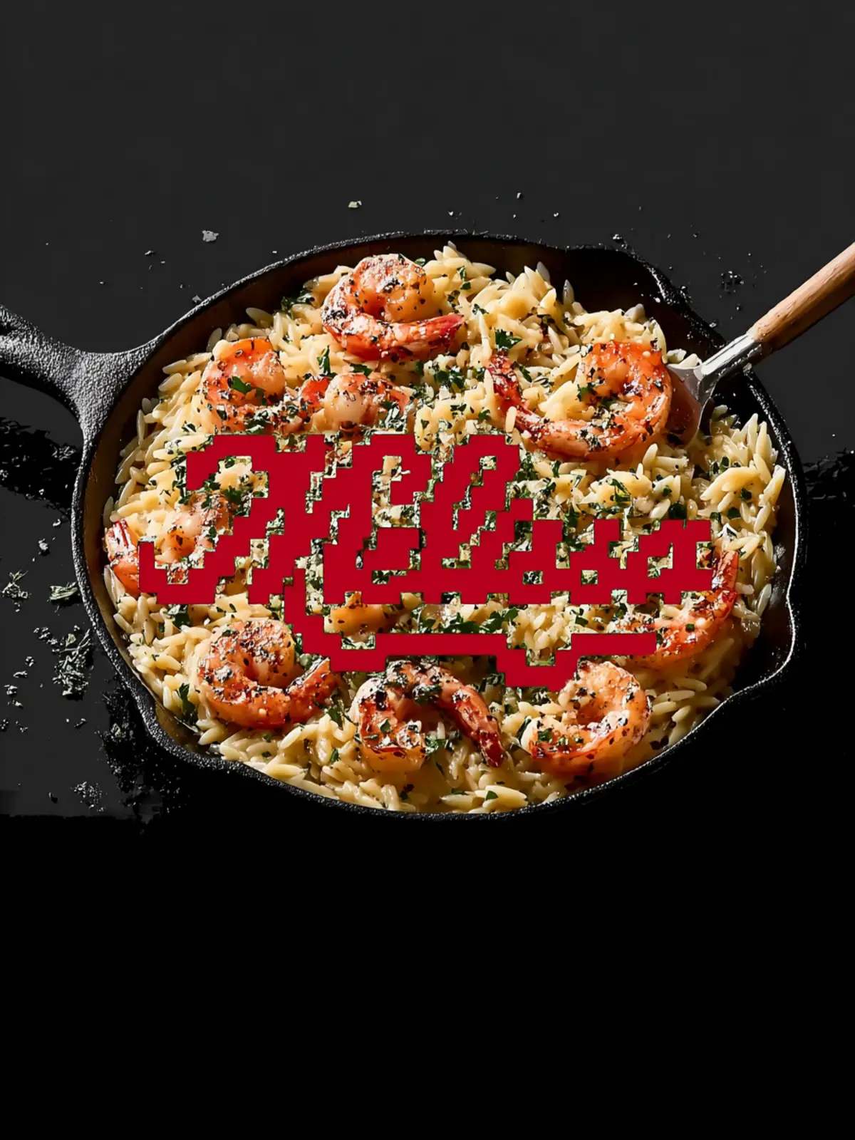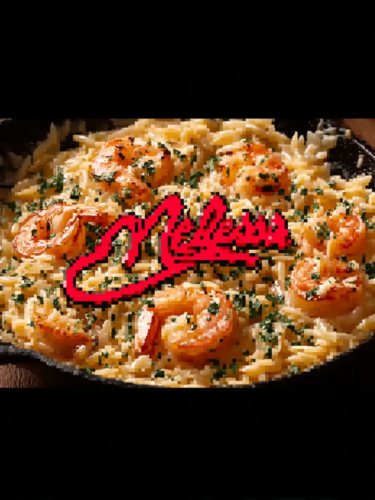 A delicious dish combining shrimp, orzo, and a creamy lemon-garlic sauce.