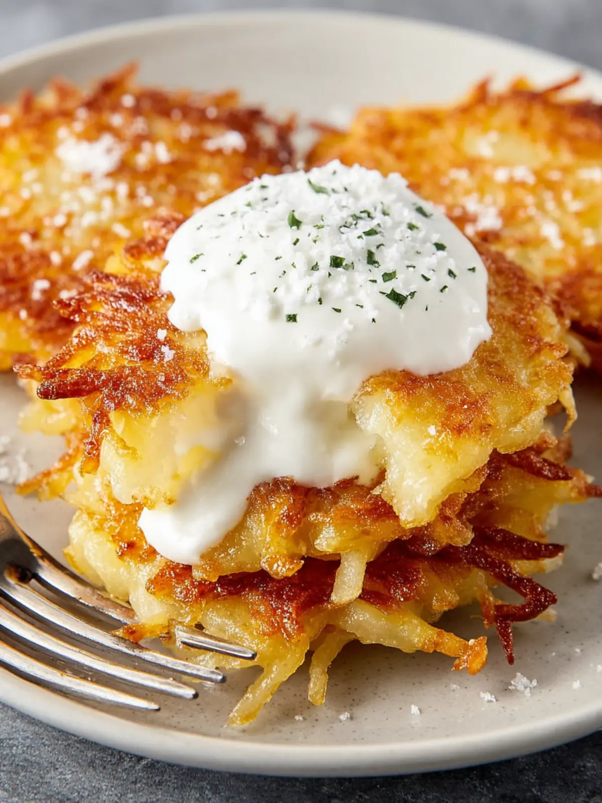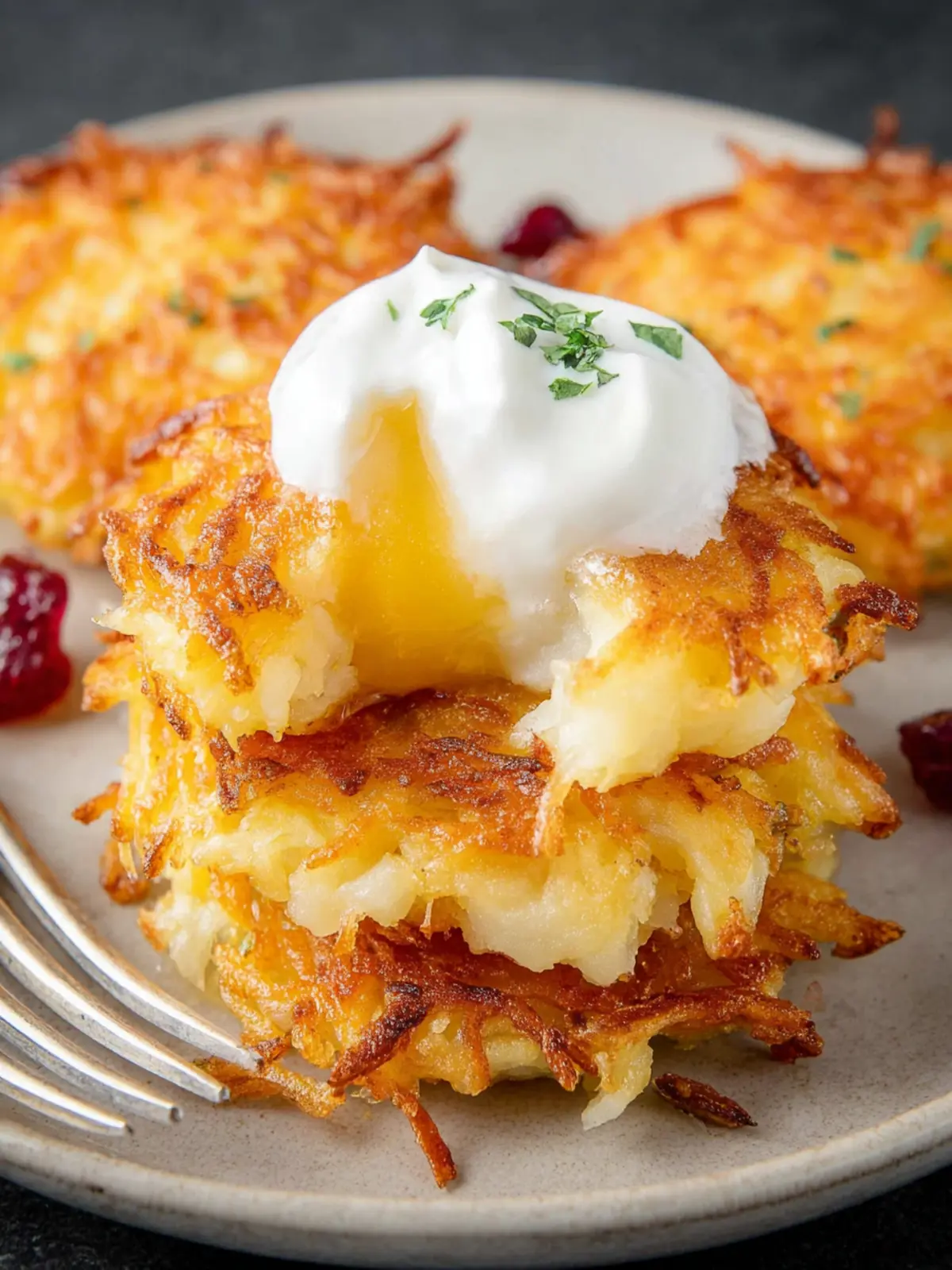 • Classic Toppings: Serve your latkes with traditional accompaniments like sour cream and applesauce. The creamy texture and sweet flavor complement the crispy edges beautifully.