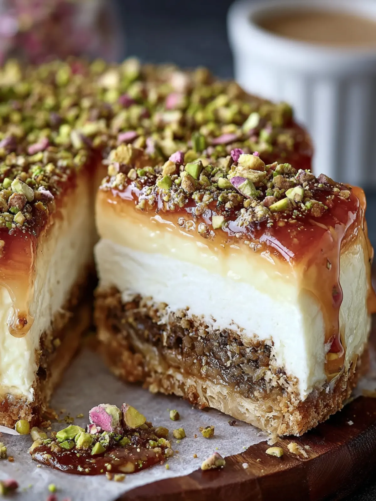 Pistachio Baklava Cheesecake Delight: Indulgent Fusion Bliss