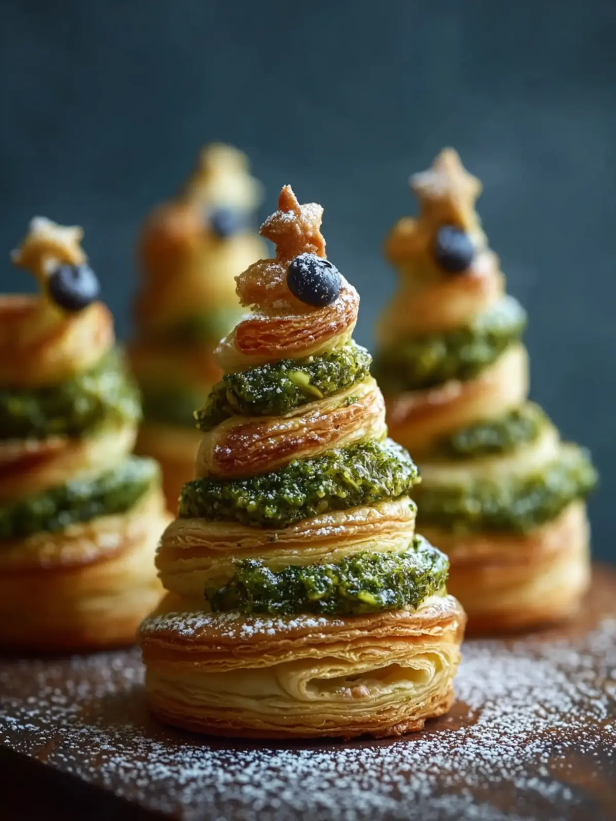 Delicious and festive puff pastry trees filled with basil pesto and Parmesan cheese, perfect for any occasion.