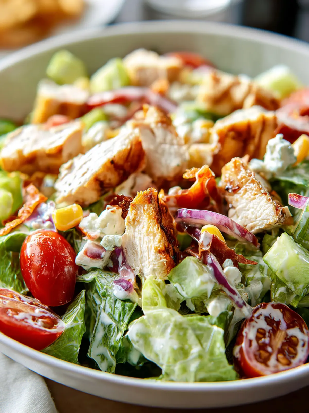 • Chicken: Use grilled or roasted chicken for a juicy, flavorful protein. Shred the chicken after cooking, which helps it absorb the dressing better and ensures every bite is delicious.
