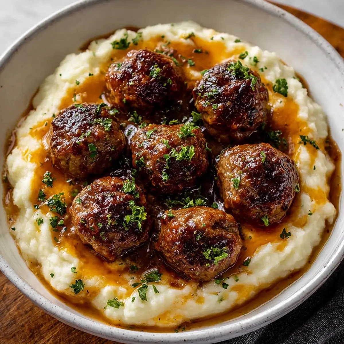 What makes savory meatballs with mashed potatoes a comfort food classic?