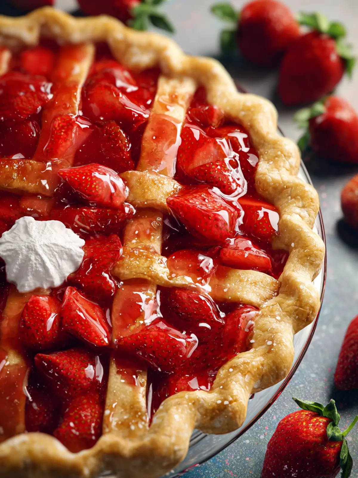 A delicious strawberry pie made with fresh strawberries and a flaky all-butter crust.